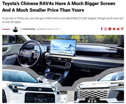 全新国产丰田RAV4荣放让美国人破防:屏幕大得多 还更便宜! 发布时间:2025-11-26