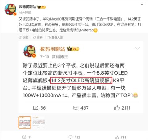 Mate80同期发布!华为新款二合一平板电脑配置揭晓:14.2英寸+麒麟9系 发布时间:2025-11-15