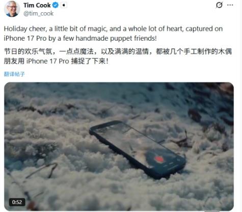 iPhone17Pro全程拍摄!库克点赞苹果2025假日短片 发布时间:2025-11-28