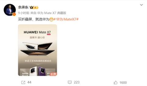 MateX7全系首发麒麟9030Pro!余承东:买折叠屏就选华为 发布时间:2025-11-26