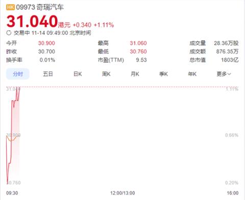 天门山挑战翻车 奇瑞股价下跌 市值一天蒸发40亿港元 发布时间:2025-11-14