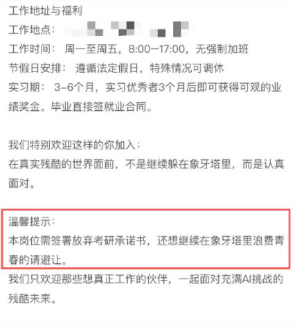 一公司招实习生需签放弃考研承诺书:浪费青春的人请避让 发布时间:2025-11-03