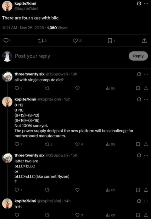 Intel288MB大缓存剑指9950X3D2!下代NoveLake-S包含四款bLLC型号 发布时间:2025-11-28