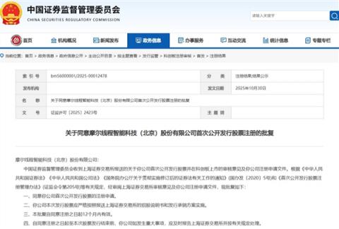 国产GPU第一股来了!证监会同意摩尔线程首次公开发行股票注册 发布时间:2025-10-30