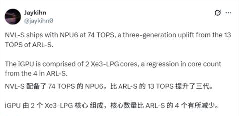 IntelNovaLakeAI性能5倍飞跃!NPU6带来74TOPS 发布时间:2025-11-25